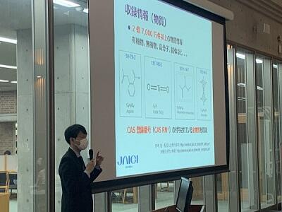 化学情報協会の築城彰洋氏より、CAS SciFinder-nの利用登録方法、概要説明、研究トピックからの文献検索、構造検索・反応検索方法等について、参加者の方々に実際にパソコンで操作いただきながら、ご講演いただきました。