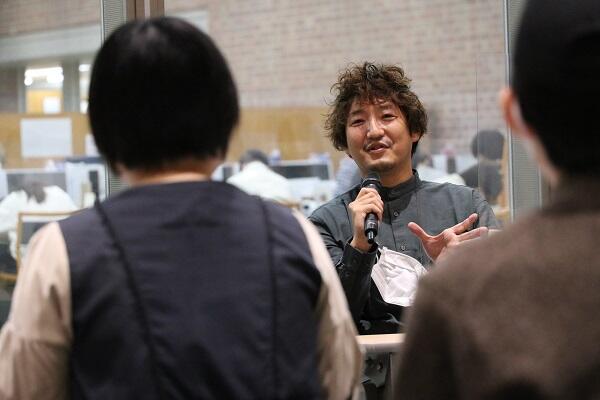 宇山さんは自己紹介のなかで、幼少期に架空の場面を想像して遊んだことが作品づくりの原体験となっていること、ドラマを通じて脚本家という仕事に興味を持ち始めた中学時代、よく本を読んだ高校生や大学生のころの読書歴を振り返りました。そして「読んだ本を棚に並べると、人生の歴史を一つひとつ重ねている感じがします。将来自分が悩んだり挫折したりしたときに、本が助けてくれる経験はきっとあります。心に残った本は手元においておくことをお勧めします」と読書に対する考え方を述べました。